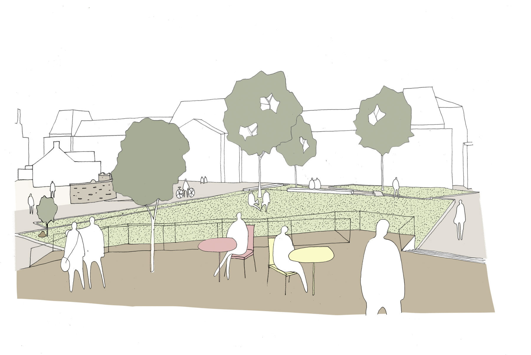 The design approach at Lauriston Place is to create a more formal and restrained public realm in keeping with its world heritage context. A greener more intimate space to the east blends into a harder more formal space moving westward. The end goal is to create a public realm that promotes high quality and innovative design, as well as providing a safe and activated space that encourages dwell time. In addition, the design proposals build upon the existing townscape and civic character of the space.