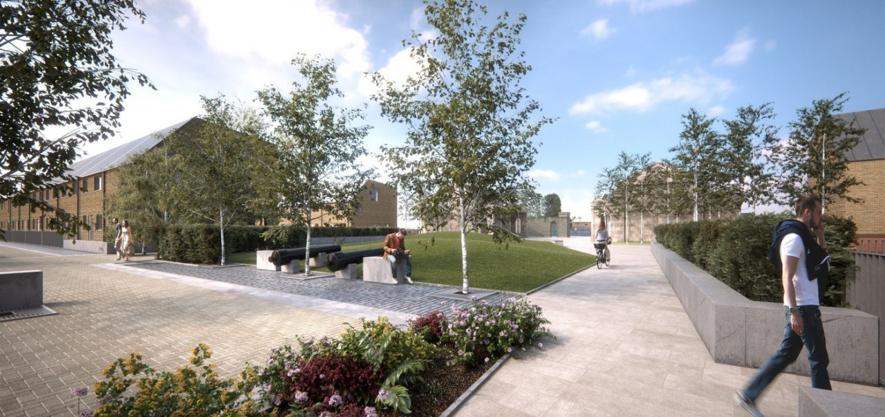 The landscape proposals offer a holistic approach to the site complimenting the built form and embedding it into a high quality setting for the new residents. The external environment helps to define the landscape proposals through the integration of a ‘Living Street’ principle and providing a series of varied spaces offering opportunity for varied activity. The central green, children’s play area, community facilities, connection axis from the Hamilton Wynd houses and residential aspects all directly address a core Square.