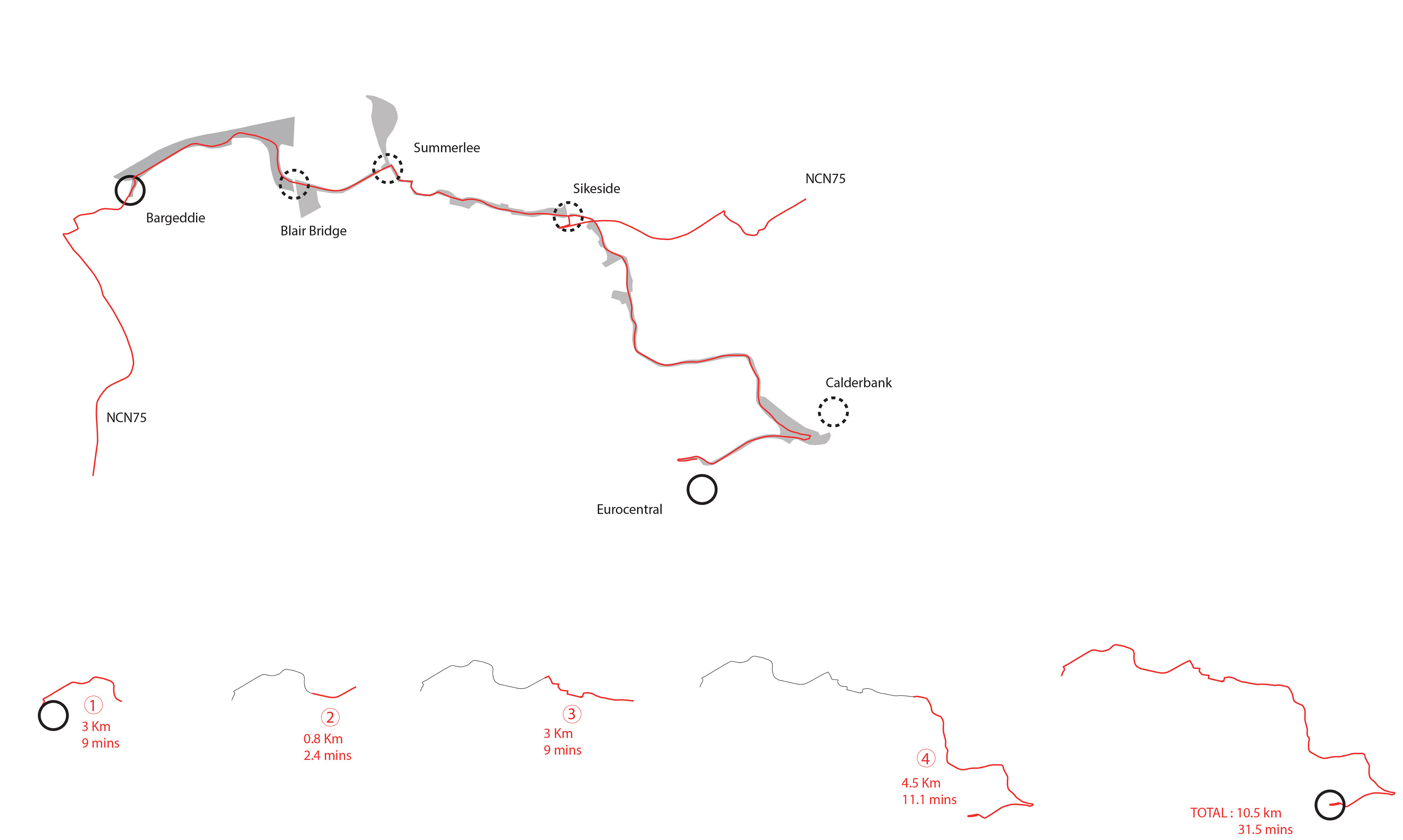 The route can be used as a commuting network from the adjoining settlements to Coatbridge, west to Glasgow or east to Euro Central and Bathgate beyond. At a local level, each area of the route will be analysed to assess the access and infrastructure potential.