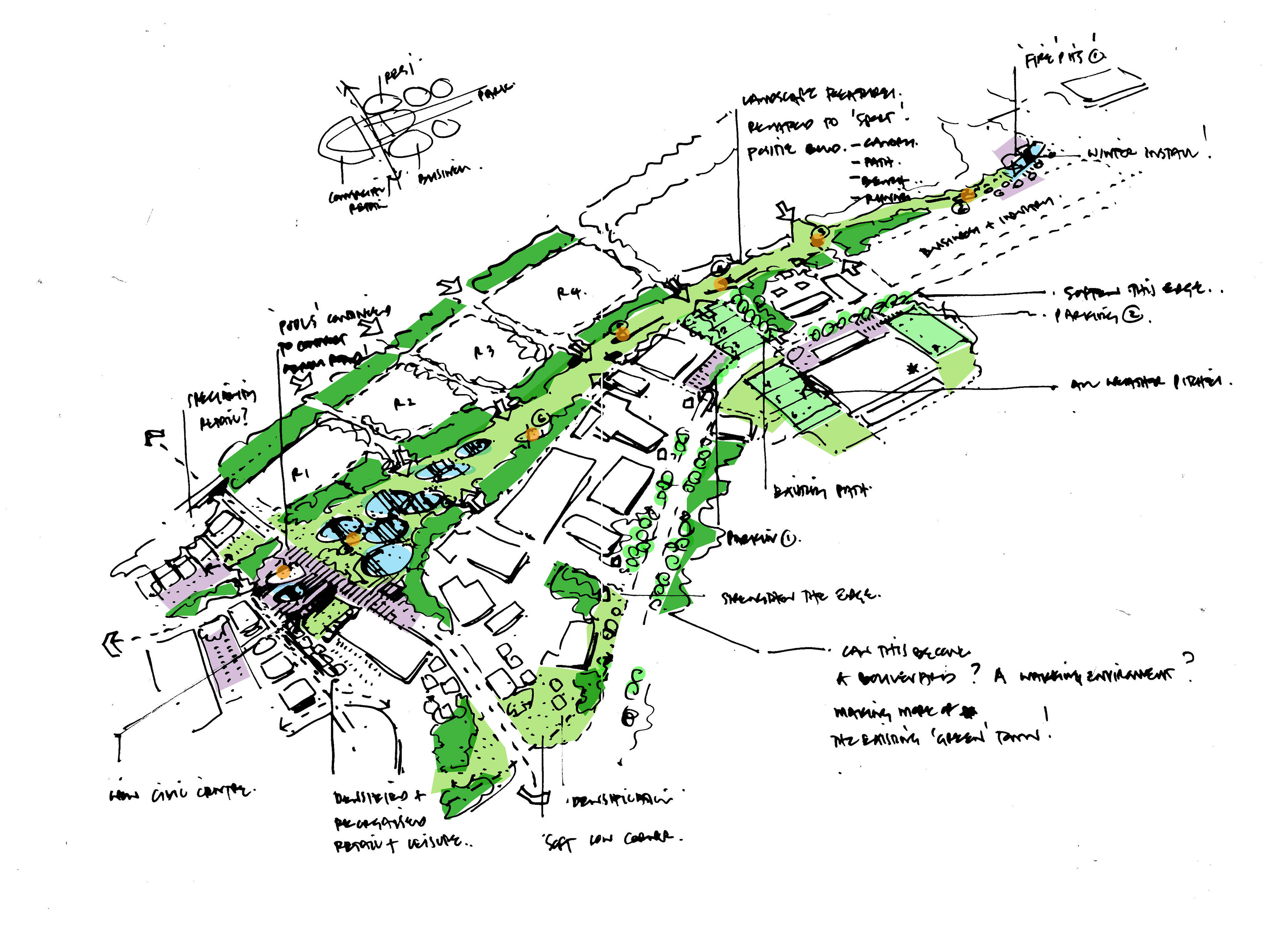 - A 3km of trail through the town, introduces lighting, signing, street furniture and meadow grass planting.