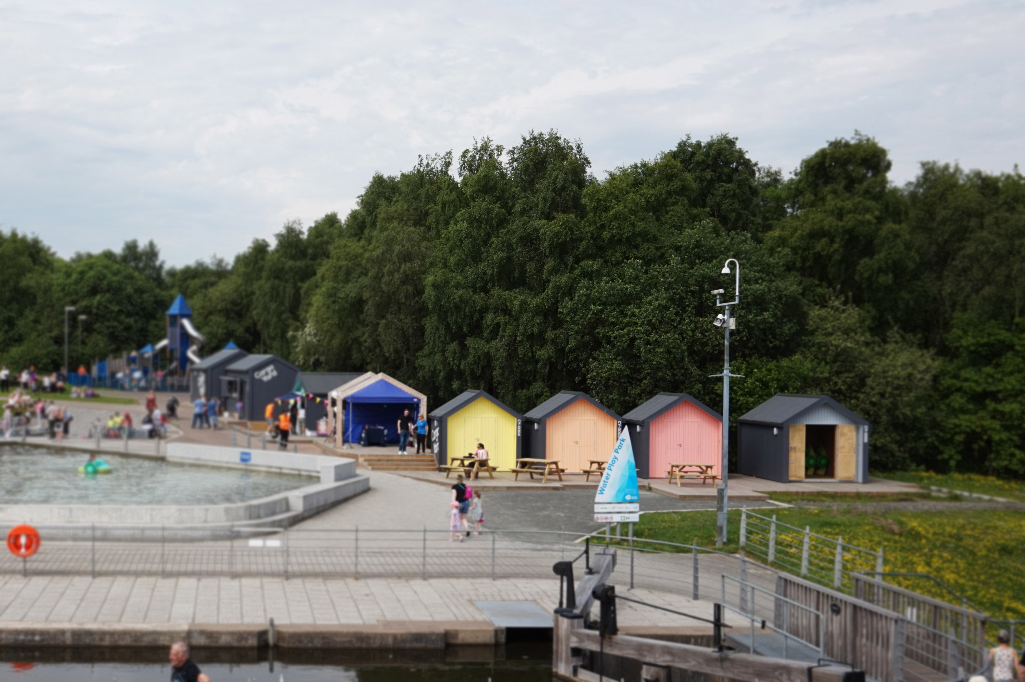 The focus of the landscape design strategy for this area was to improve amenity and visual quality of the external food offer. The design brief was to compose an arrangement which is functional in operation, consideration of servicing for the mobile units and allows flexibility and promoted the appropriate specification of building materials and to consider the operational environmental impact from these outlets. The Cargo Yard extends alongside the sites main play areas and provides a new frontage to the canal basin, offering visitors the chance to enjoy the simple food offering and the views of the basin and wheel beyond. The activity outlets provide a new opportunity for visitors to hire equipment and is the launch point for exploration around the estate.
